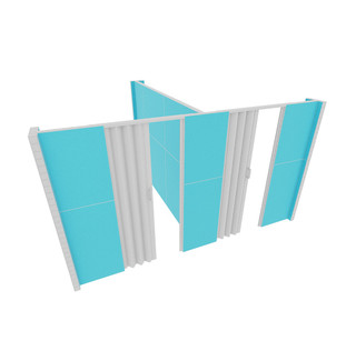Create professional, private spaces with the Versare EverPanel T-Shaped Wall Kit with 2 Doors 10'6" Width X 7' Height in Light Blue High Density Polyester. This modular wall solution balances privacy, accessibility, and durability, making it perfect for offices, events, classrooms, and healthcare environments.