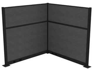 Acoustic Portable Partition Pre-Configured Hush Panel Cubicle, L Shape 6' x 6' Classic Gray Fabric - Black Trim