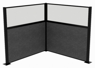 Acoustic Portable Partition Pre-Configured Hush Panel Electric Cubicle, L Shape 6' x 6' W/ Window Classic Gray Fabric - Black Trim