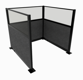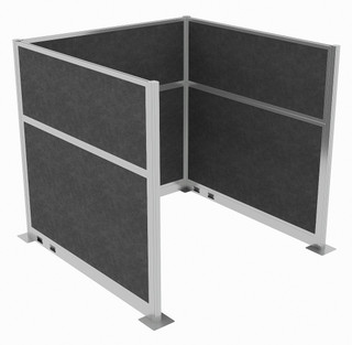 Portable Partition Wall Pre-Configured Hush Panel Electric Cubicle, U Shape 6' x 6' W/ Window Classic Gray Fabric - Silver Trim