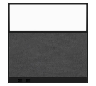 Configurable Acoustic Cubicle Partition Electric Hush Panel 3' x 6' W/Window Classic Gray Fabric Clear Fluted Window Black Trim