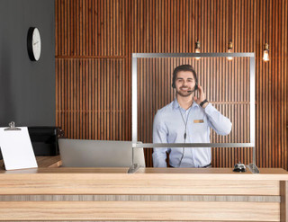 Mitigate airborne germs with durable, easy-to-clean polycarbonate panels. The ClearView Folding Countertop Screen helps you ensure social distancing, comfort and privacy when you need to interact in public spaces. Scan items through the screen to minimize the need for physical contact. Available with either a lower opening for the transfer of small items, or a framed opening for transfer of larger items. Height is adjustable. Fully collapsible for easy relocation or storage.