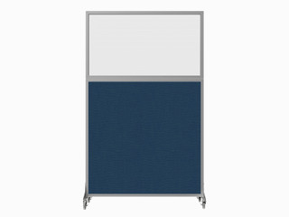 Hush Screen Portable Partition 4' x 6' Navy Blue Fabric Clear Window Without Wheels