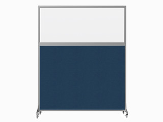 Hush Screen Portable Partition 6' x 6' Navy Blue Fabric Clear Window With Wheels