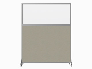 Hush Screen Portable Partition 6' x 6' Sand Fabric Clear Window With Wheels