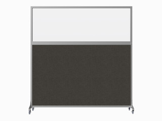 Hush Screenª Portable Partition 4' x 6' Mocha Fabric Clear Fluted Window With Wheels