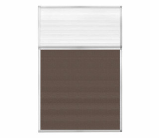 Portable and Acoustic Partition Hush Panel Configurable Cubicle Partition 4' x 6' W/ Window Mocha Fabric Clear Fluted Window Black Trim